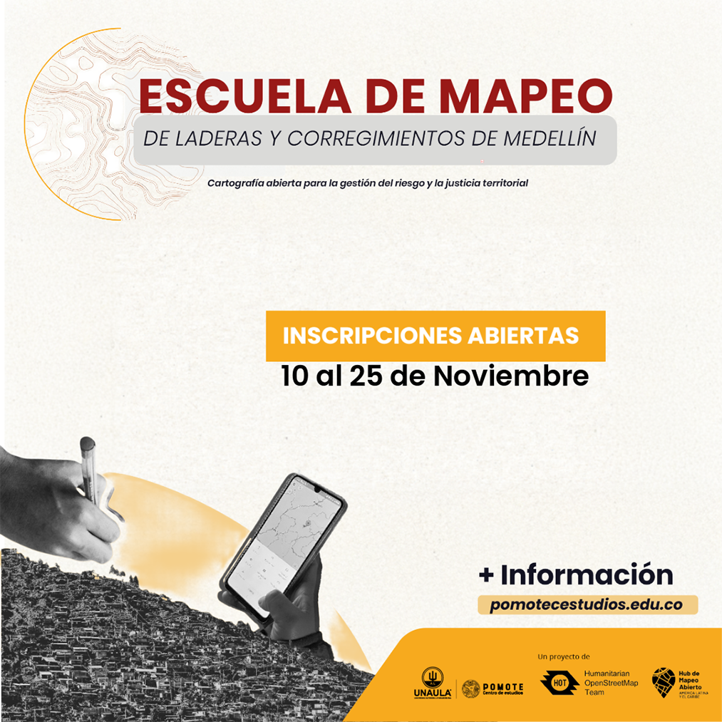 LLamado a postulaciones escuela de mapeo de territorios de ladera y corregimientos del distrito de Medellín