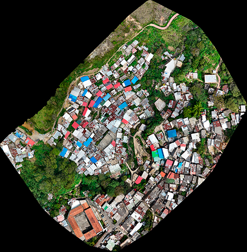 | Descripción | Fotografía aérea del barrio Esfuerzos de Paz, comuna 8 del distrito de Medellín. |