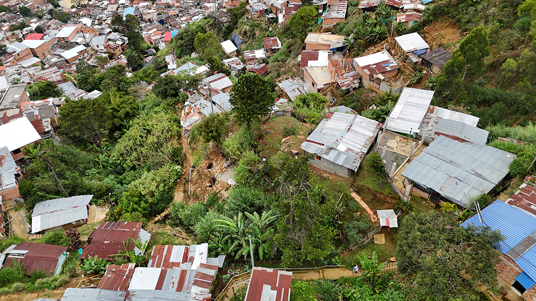 La Escuela surge en un contexto de profunda desigualdad estructural. En Medellín más de 233.000 familias carecen de vivienda digna y muchos barrios de las laderas oriental y occidental de la ciudad siguen sin reconocimiento oficial. Estos barrios han sido autoconstruidos en su gran mayoría por personas que han sufrido el desplazamiento forzado y que son víctimas del conflicto armado. La falta histórica de servicios públicos y estigmatización han sido una constante en la historia de estos territorios: el Plan de Ordenamiento Territorial cataloga los asentamientos informales como “focos de violencia urbana”, proponiendo su erradicación. Frente a ello, el proyecto de mapeo promueve la visibilización participativa de estos territorios excluidos, reconociendo sus memorias e identidades desde adentro.