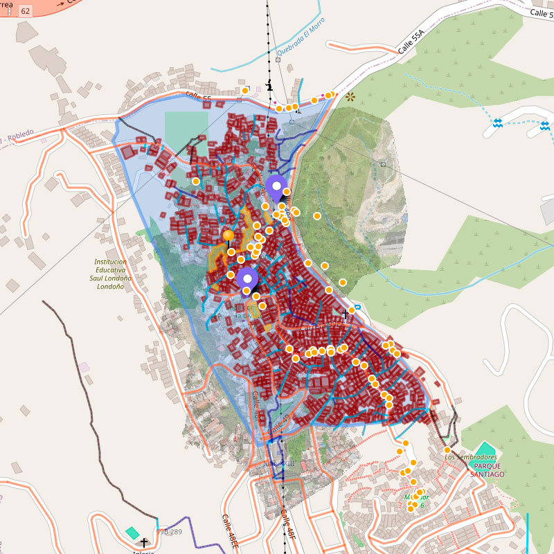 El Mapa del barrio La Divisa, Comuna 13 del Distrito de Medellín, es una herramienta de datos abiertos orientada a la visualización territorial y al fortalecimiento de procesos de prevención del riesgo en contextos de ladera, en un sector cuya configuración urbana se consolidó desde mediados de los años noventa mediante procesos de ocupación y autogestión comunitaria. A través de este visor se integran capas clave como viviendas, caminos y puntos de interés, facilitando una lectura más precisa del territorio y aportando insumos útiles para el mapeo comunitario, la identificación de condiciones de exposición y el análisis espacial del barrio.