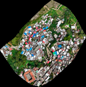 Fotografía aérea del barrio Esfuerzos de Paz, comuna 8 del distrito de Medellín.